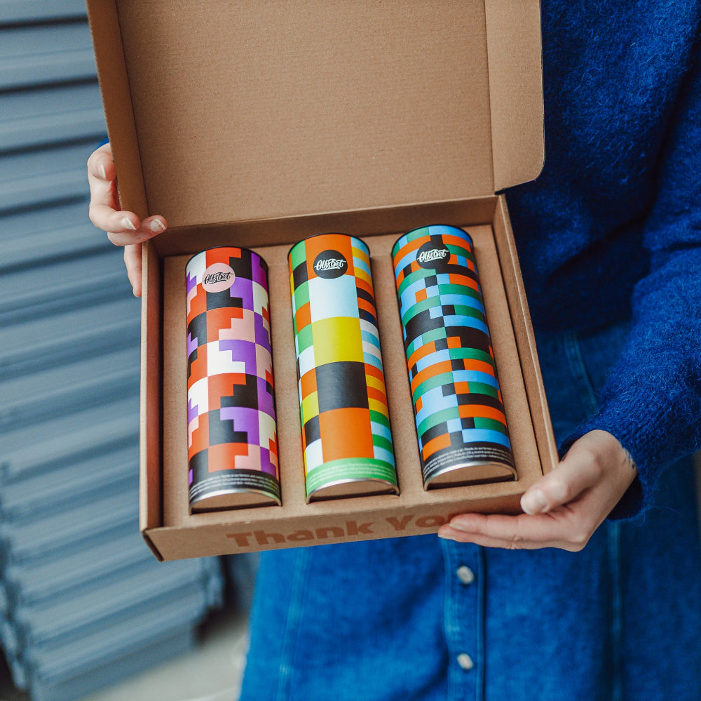 Tubusy v setu 3 káv dodáváme v potištěné krabičce a skvěle se to hodí jako dárek. Budeme rádi pokud tubusy využijete i na další věci (na tužky, na brýle apod.), případně se s tubusem zastavíte pro další kávu.
