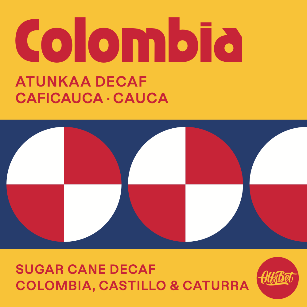 EMA má decaf a i Alf & Bet má decaf. Vybírali jsme dlouho, než jsme konečně narazili na kávu bez kofeinu, která nám chutná. Je z Kolumbie od sdružení farmářů Atunkaa, kofein byl odstraněn metodou Sugar Cane Decaf a je prostě skvělá. Středně plné tělo, vysoká sladkost zralých švestek a cukrového sirupu a nízká acidita. Pražíme ji jako omniroast – připravíte si z ní parádní espresso a i filtrovanou kávu.