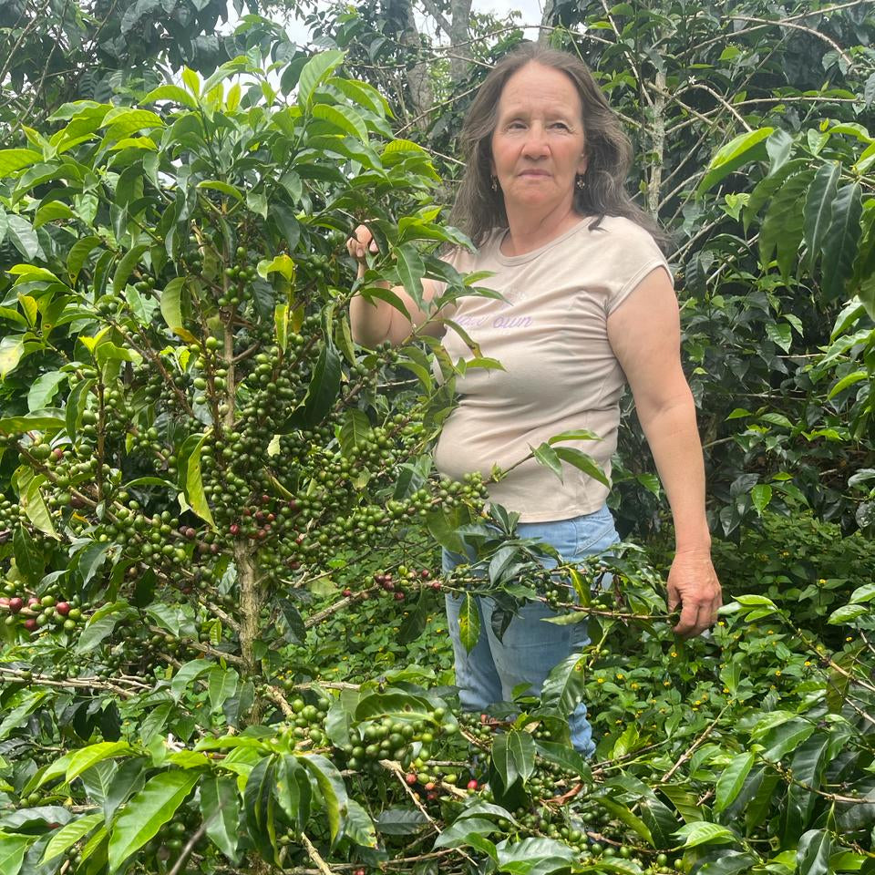 Aura Tropical, výjimečná kávová značka společnosti InConexus, zachycuje jedinečný senzorický profil vytvořený oddanými pěstiteli z Asociace Café Origen Palestina v jižní části regionu Huila. V jejím srdci stojí Doña Maria Rodriguez, producentka třetí generace a jedna ze zakládajících členek Asociace, která vznikla před deseti lety. Její farma Betania není jen kávovou plantáží – je důkazem vytrvalosti. Jako svobodná matka dokázala Maria mistrně skloubit rodinné povinnosti s řízením farmy, přičemž jí v každodenním provozu pomáhá její syn.